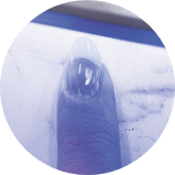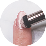 Use the Mineral Bond Applicator, dab it into the powder, and apply by pressing down onto the nail. (Do not rub; just tap up and down over the surface of the base coat.) Continue to apply powder by dabbing until full coverage is obtained.