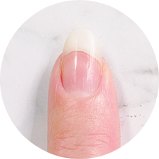 Apply a thin layer of base coat to the nail while avoiding the skin. After application, the base coat should look smooth.