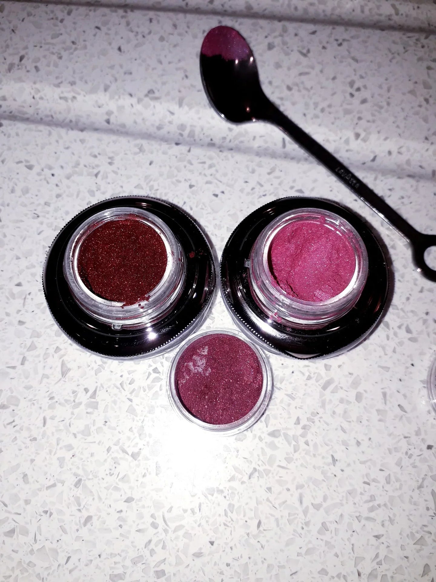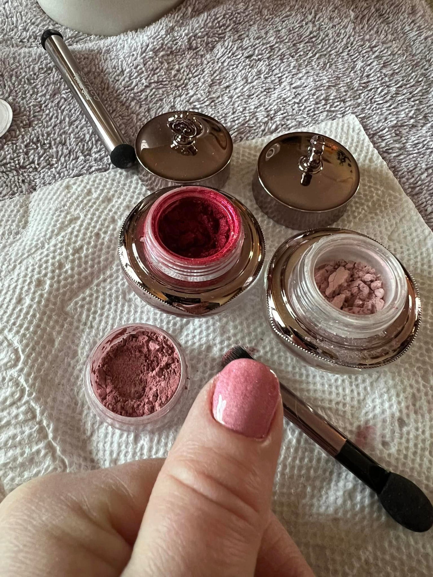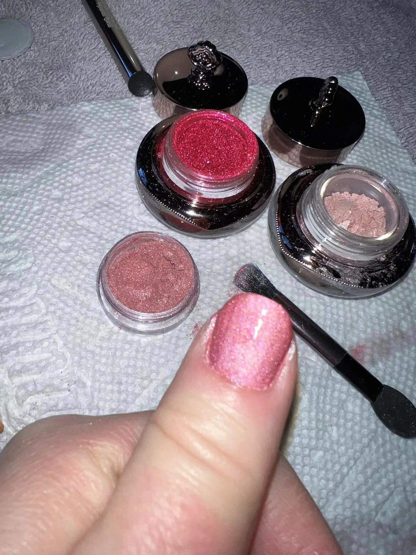 First time mixing a colour today and loving how it turned out! My mini and I went matchy matchy💗. This is Hibiscus and Ballerina..hereafter known as Ballerbiscus 😝