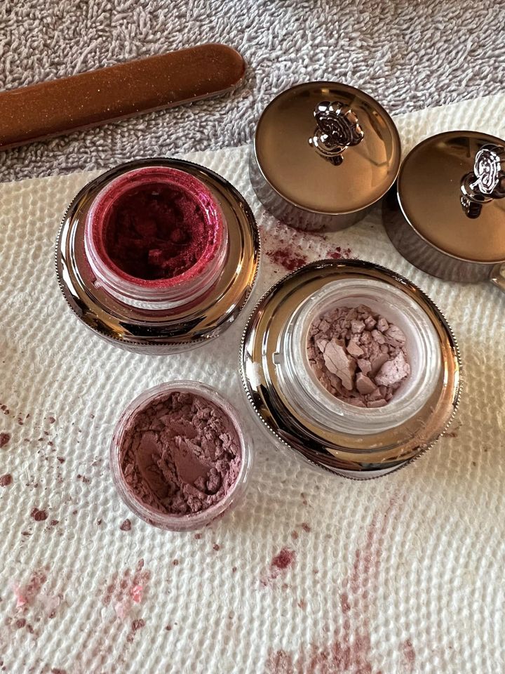 This morning my second order of new colours is still in route so I decided to play with mixing colours. This is Hibiscus and Marshmallow - Classic application. I think it ended up about a 50-50 mix. As you can see, I am a little messy with the mixing process.😊