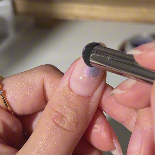 Step 1: Use the Precision Crystal File or Precision Buffer to gently file off the Top Coat