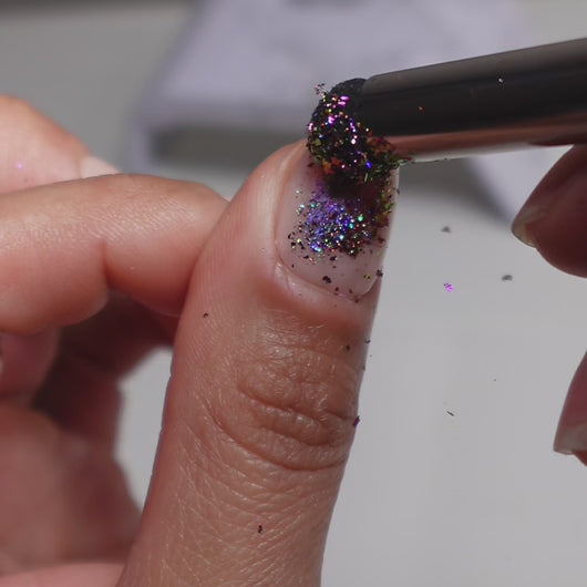 Step 3: Dip brush in powder and brush onto nail from base to tip