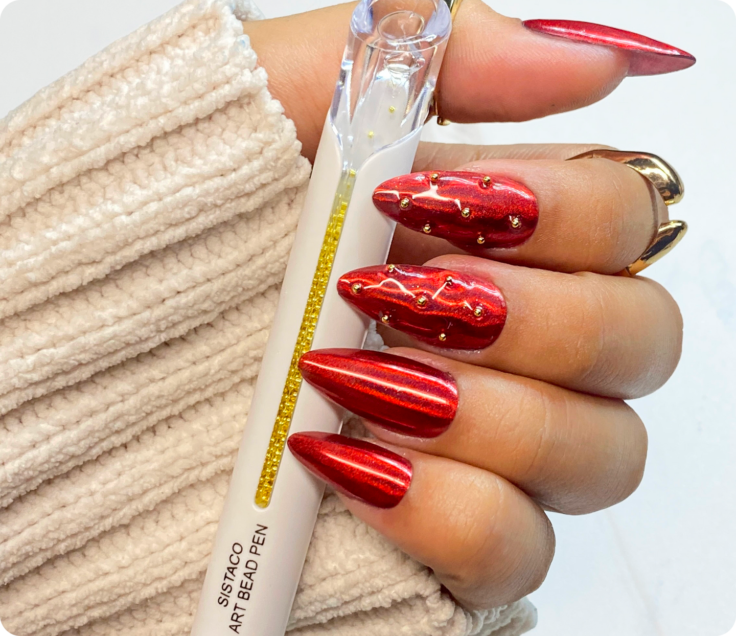 Elevate your nail art with the Sistaco Art Bead Pen, designed for effortless precision. It features tiny bullion beads that dispense, allowing you to place them neatly onto the nail for intricate 3D designs. The automatic press design ensures ultimate control and ease of use. Available in four elegant finishes — Gold, Silver, Rose Gold, and Pewter
