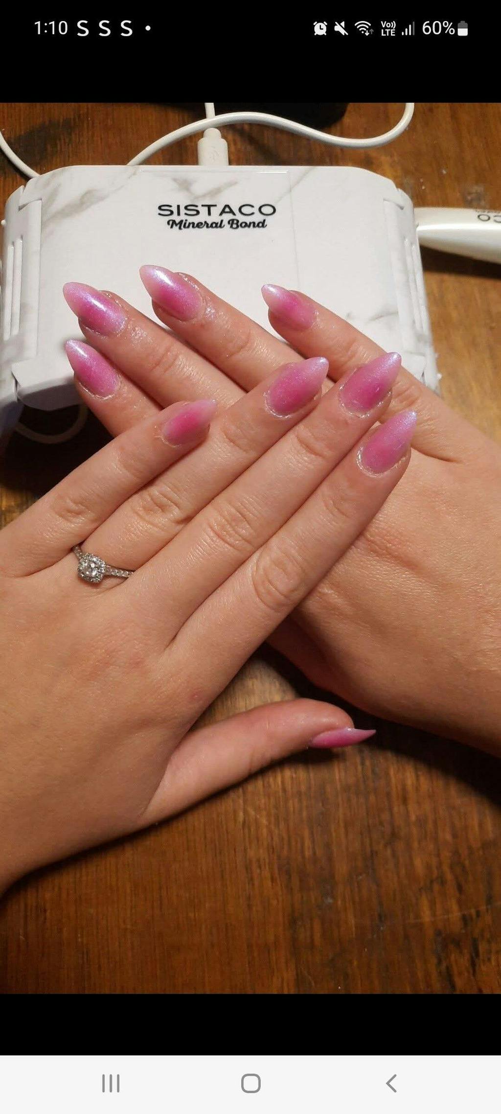 This color is beautiful! It can be purple if applies over a cured base coat or pinkish if applied over a cured top coat. This is applied over a cured base coat.