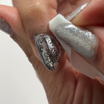 Step 7: (Optional) If using Crystal Clear formulation, rub Holographic/Metallic Mineral Bond powder over design for effect.