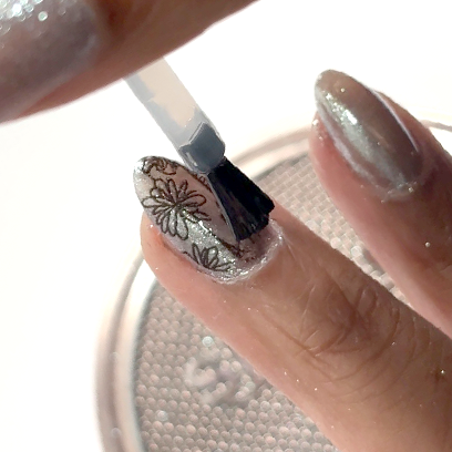 Step 2: Finish with Pattern Press Top Coat. Set for 2 mins.