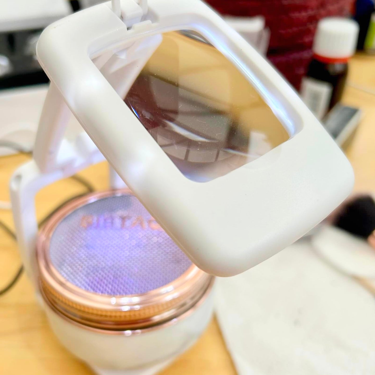 Yes, the base of the Precision Magnifier is designed to be stable, ensuring that your fingers and nail powders remain secure during the manicure process.