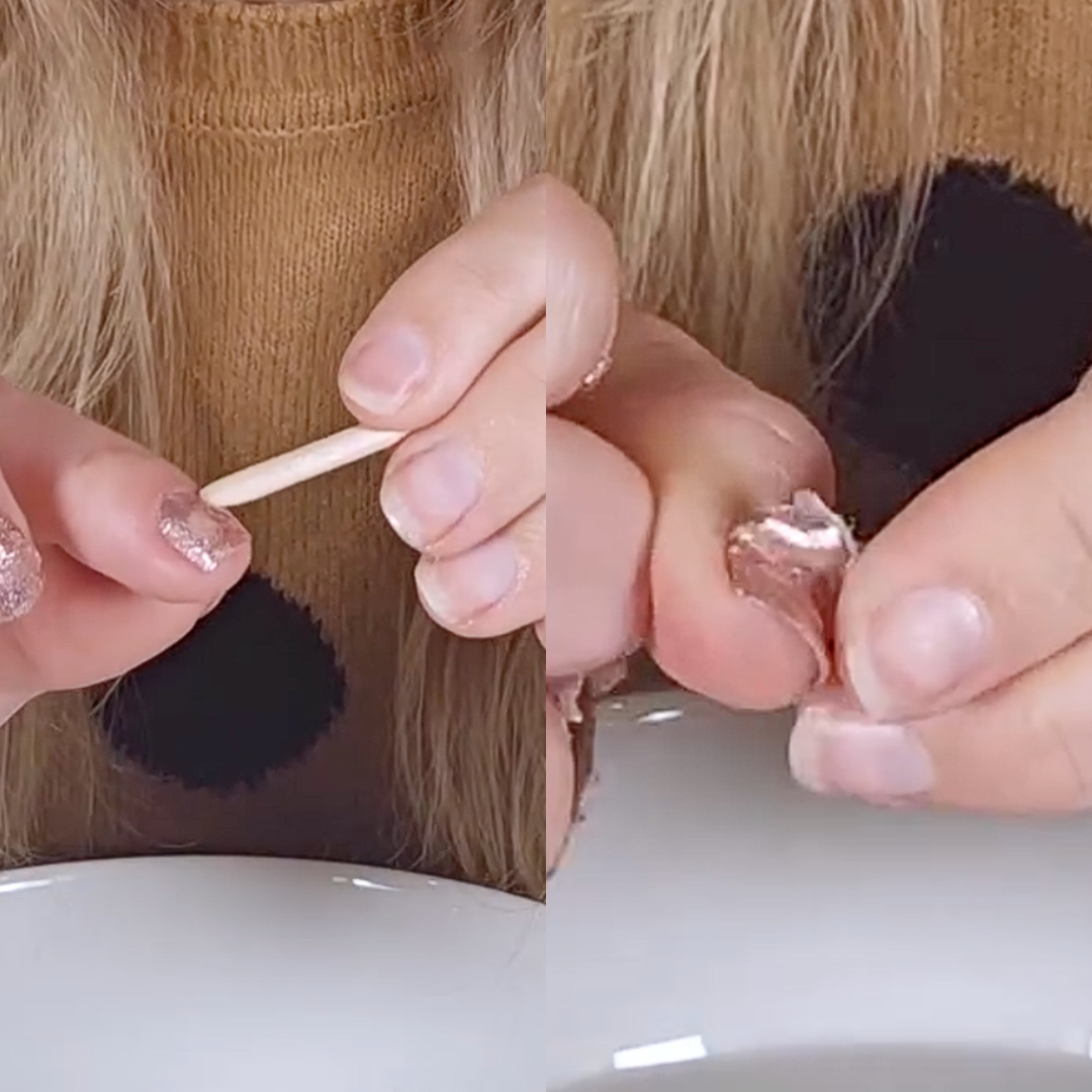 Step 2: Apply Rapid Remover with slight thickness onto the nail shade. Wait approx. 5 to 8 minutes.