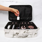 Store, organize and carry your nail powder pots and essentials everywhere you go in this durable, spacious, elegant marble-printed case.