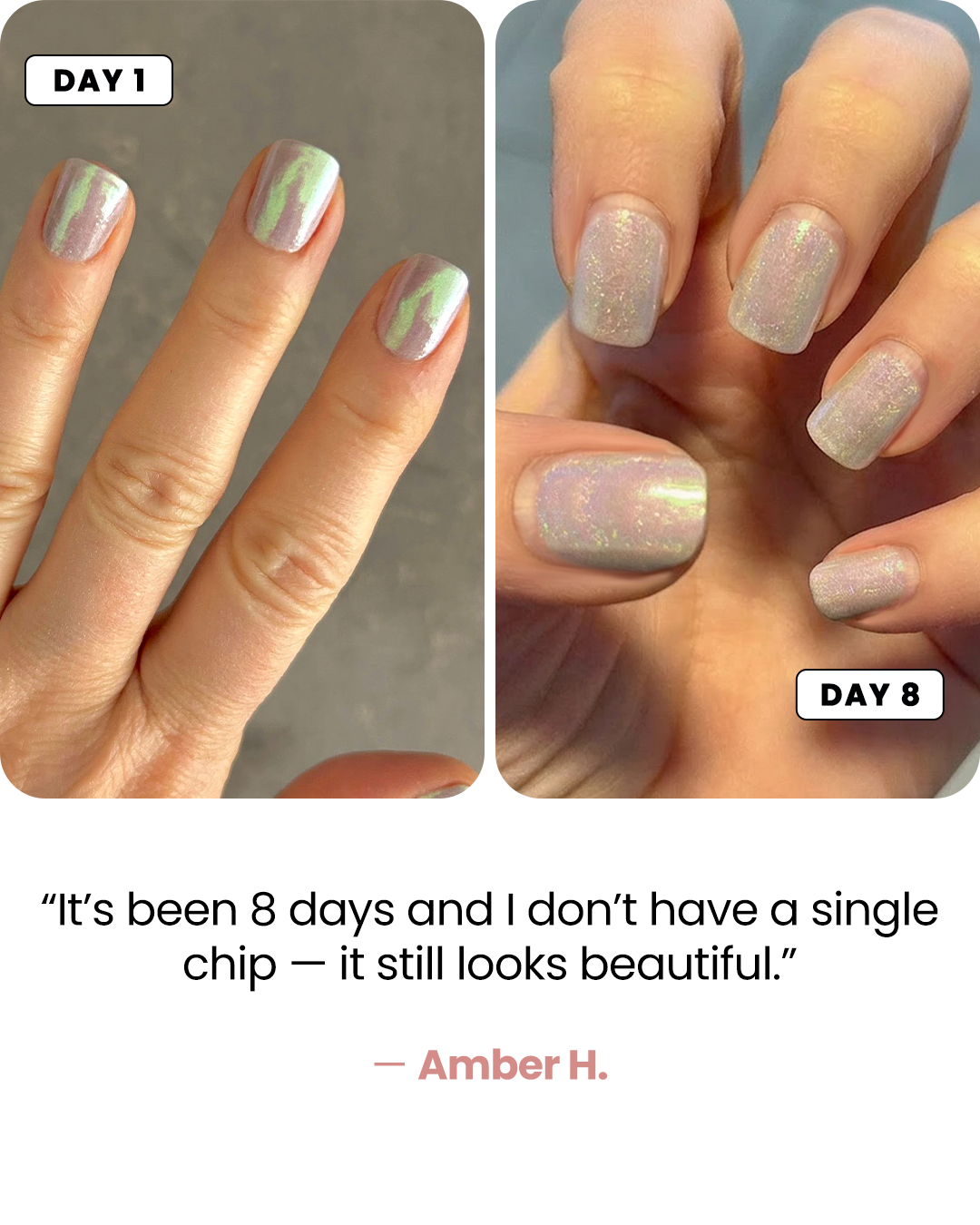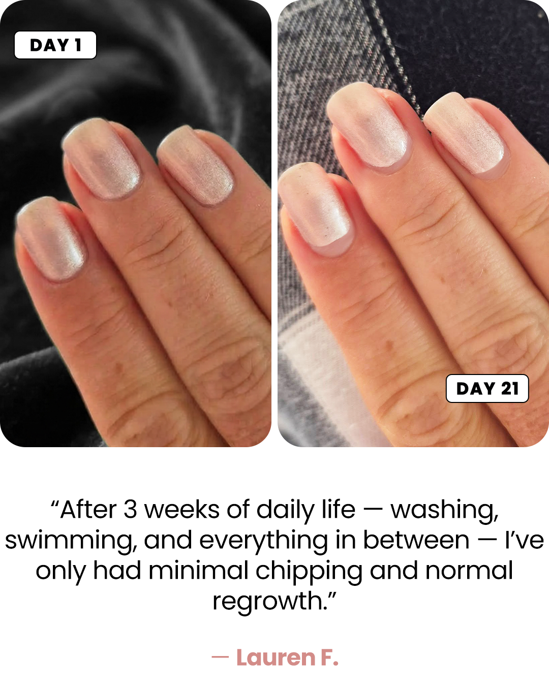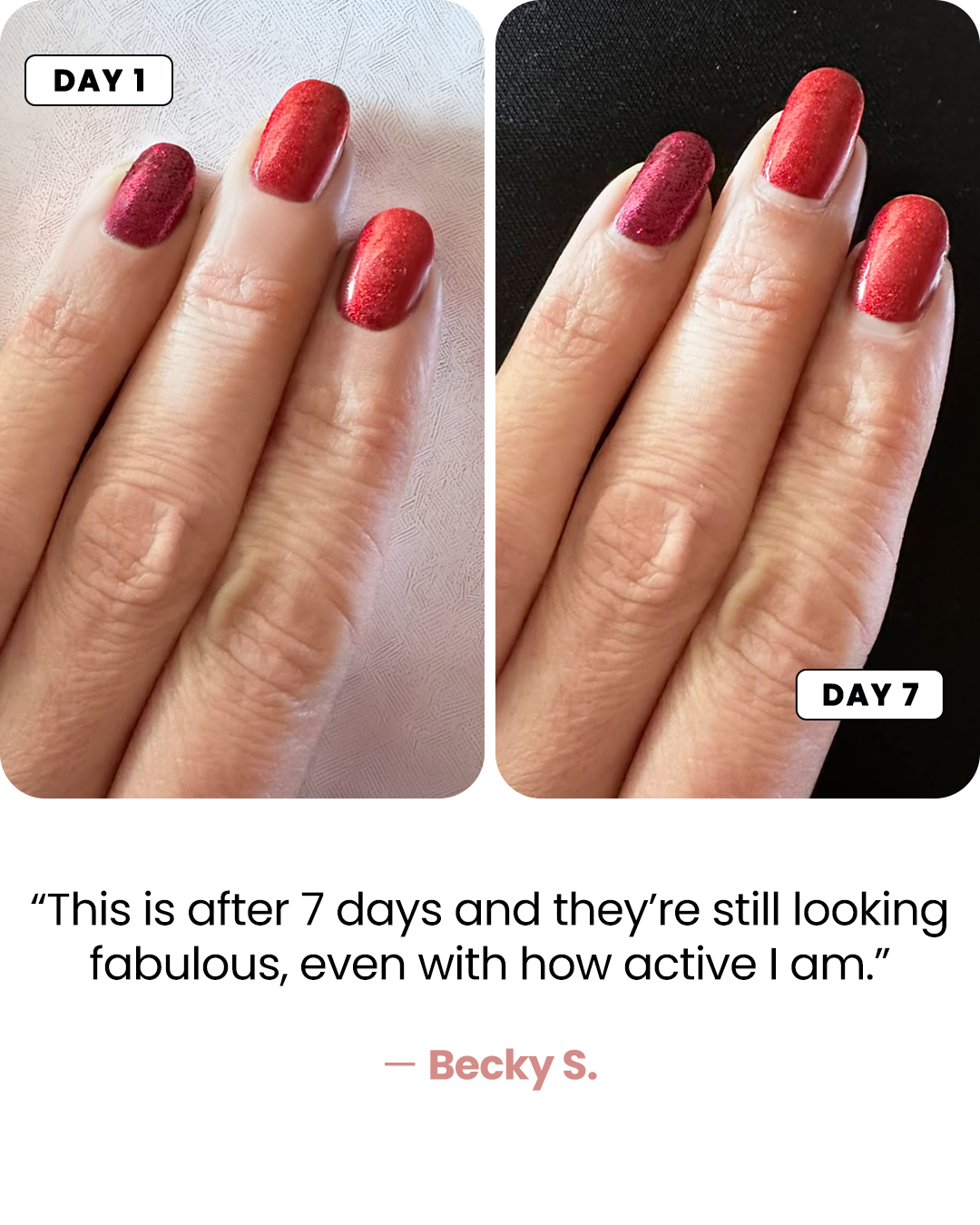 Strong, durable nails that don’t chip after days.
