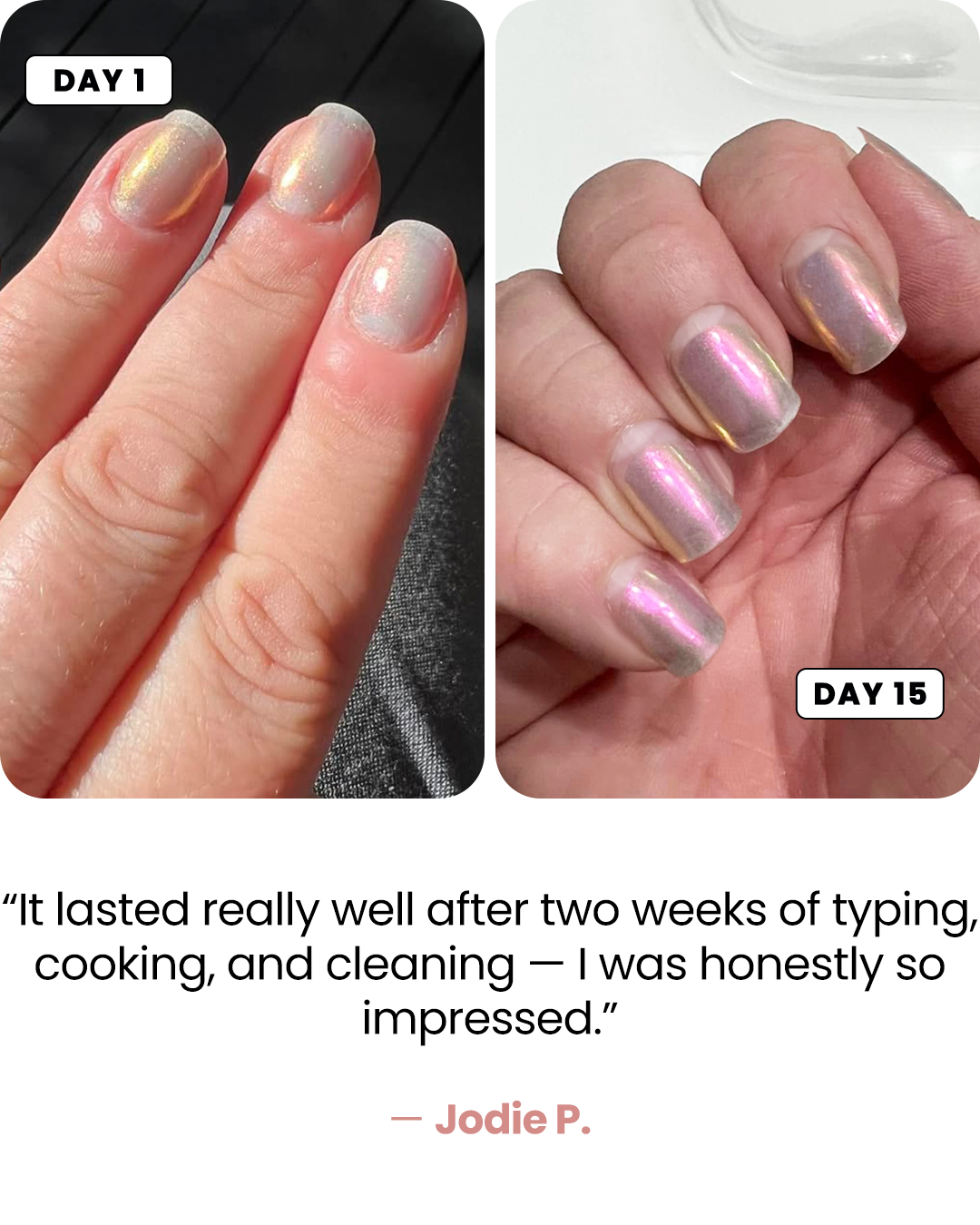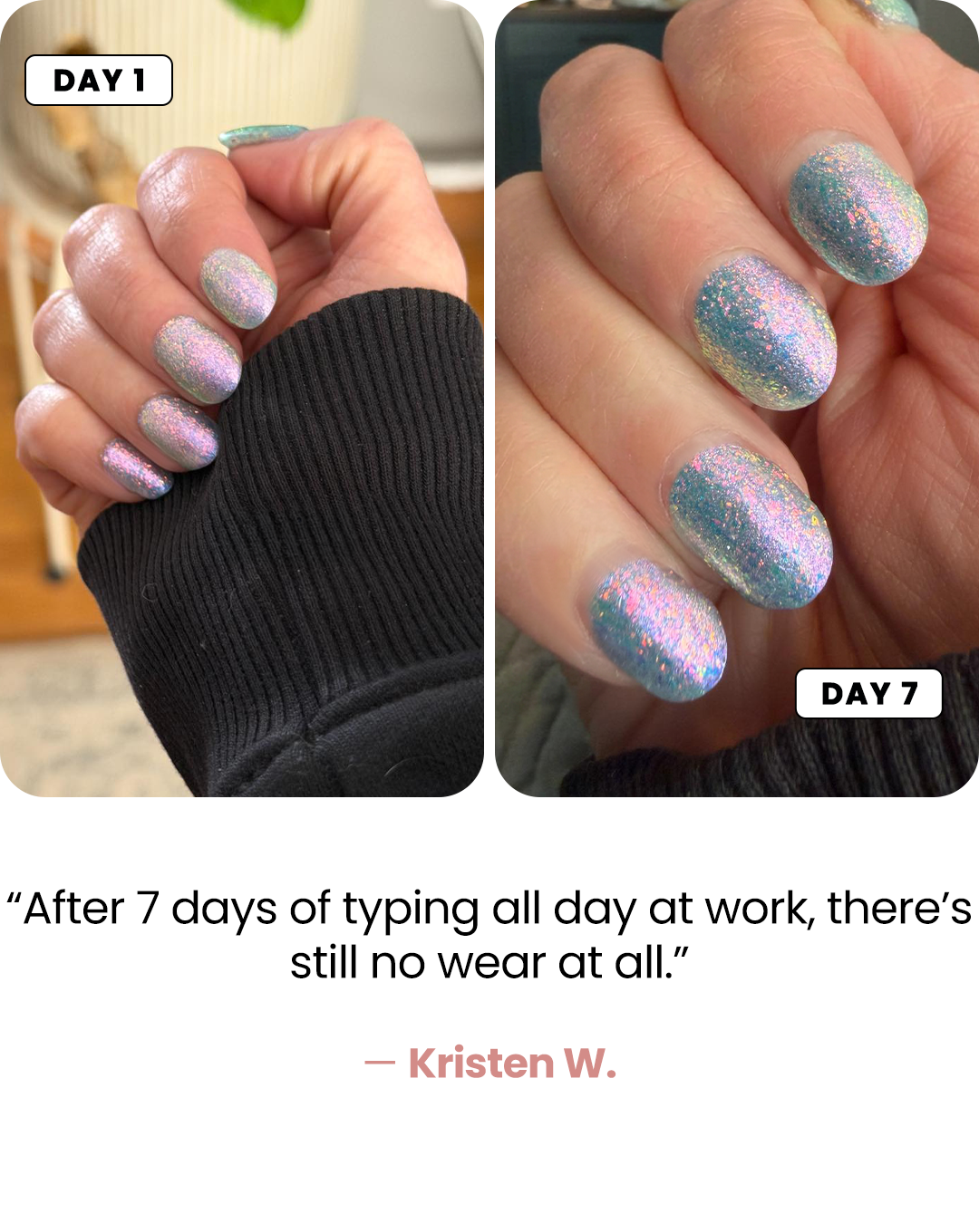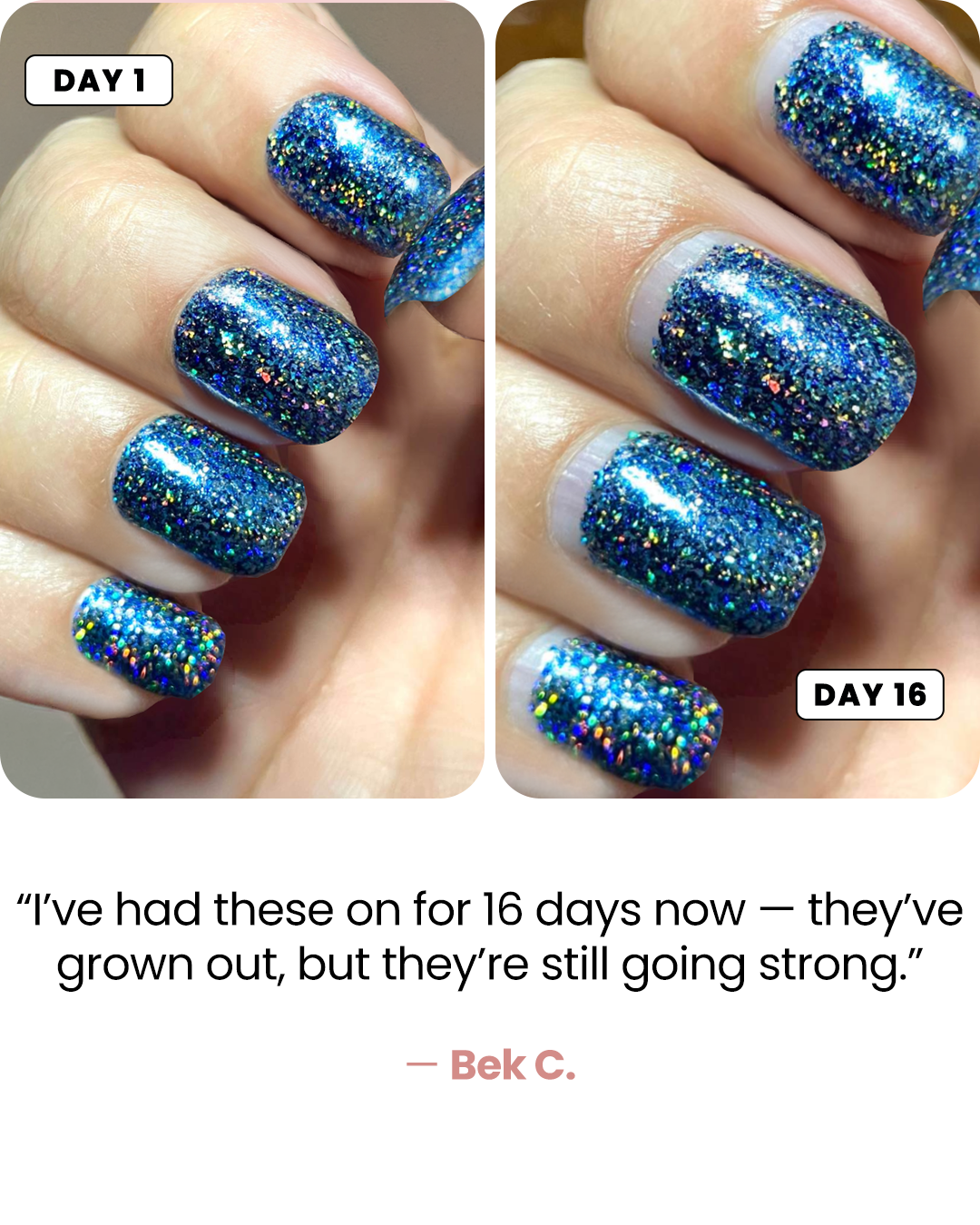 Strong, durable nails that don’t chip after days.