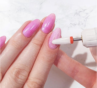 Use on low speed to removal of your Top Coat, but just 'feather' off the Top Coat, hardly touching the nails. Always keep your e-file moving, never staying in one position.